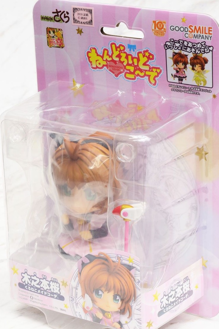 From the series celebrating its 20th anniversary ‘Cardcaptor Sakura’ which has an all new ‘Clear Card Arc’ manga starting in July comes a Nendoroid Co-de of the main character – Sakura Kinomoto! She is wearing the adorable black cat maid outfit from the series complete with cat ears and tail!! Her frilly skirt has also been sculpted in lovely detail for a figure that fans are sure to enjoy by their side!
