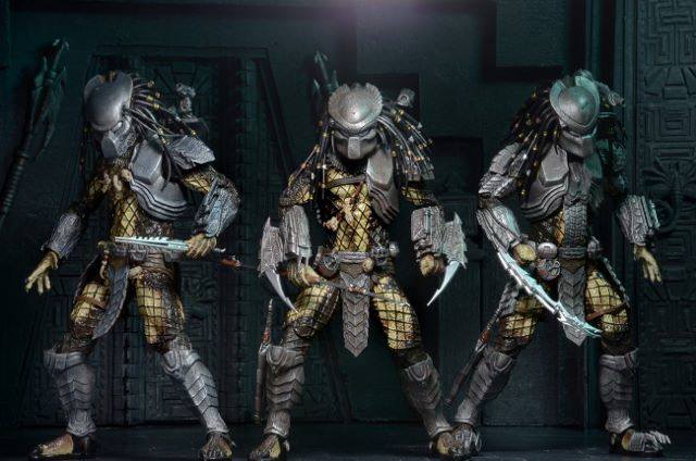 Each has over 30 points of articulation and comes with character-specific gauntlets, armor, weapons, trophies and other accessories. As an added bonus, the hands, gauntlet blades and cannons are removable and compatible with all AvP Predators.